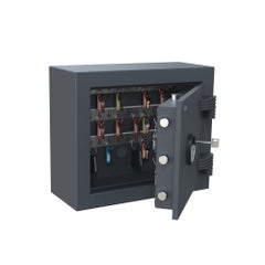 A key safe allows you to organise your keys and while storing them securely behind lock and key. Such a key safe is not only ideal for at home, but it can also offer a solution for companies where a lot of keys are in circulation and controlling them is a big challenge. This is why our range includes small safes like the Filex KB Key Box or larger safes like the Filex KC Key Box, in which you can store up to 400 keys.