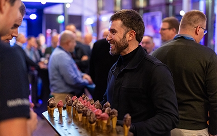 Het hoogtepunt van de avond was de inspirerende presentatie van Mark Tuitert in de grote zaal van het theater. Hij vertelde over weg naar Olympisch succes en hoe hij persoonlijke obstakels overwonnen heeft om dit te bereiken. Een fascinerend verhaal over doorzettingsvermogen met een duidelijke link naar het ondernemerschap.