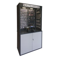 U heeft de keuze uit een groot (641 locaties) of klein assortiment sleutels (430) inclusief cilindersleutels, autosleutels, kruissleutels en kleursleutels. Deze sleutels kunnen middels diverse sleutelborden aan de binnen- en buitenzijde van de bar bevestigd worden.De bar beschikt over een afsluitbare onderkast met legbord en is zeer compact, waardoor hij weinig ruimte in beslag neemt in uw winkel. De bar wordt geleverd inclusief verlichting, biedt de ruimte aan een sleutelmachine en is leverbaar in diverse RAL-kleuren.